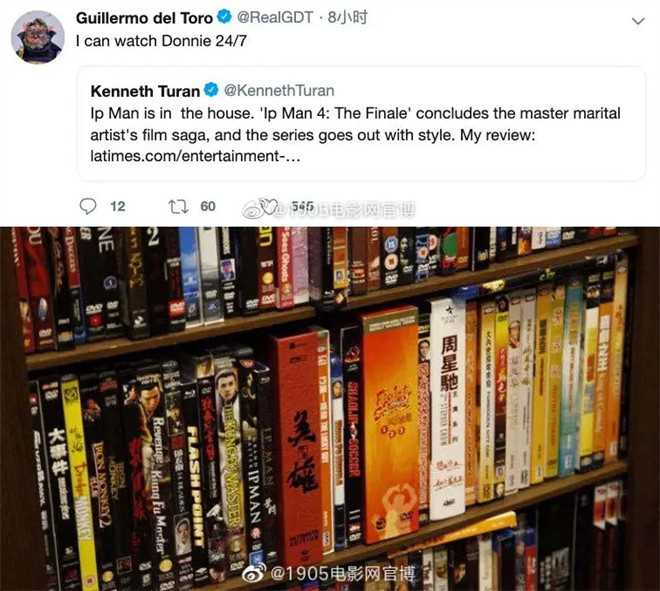 《水形物语》导演吉尔莫·德尔·托罗是甄子丹的“死忠粉”,家里收藏了很多他演过的电影,甚至在《叶问4》北美上映时,他在社交平台上转发影片的好评,更是不吝赞美,“我可以一周7天,每天24小时看甄子丹。”